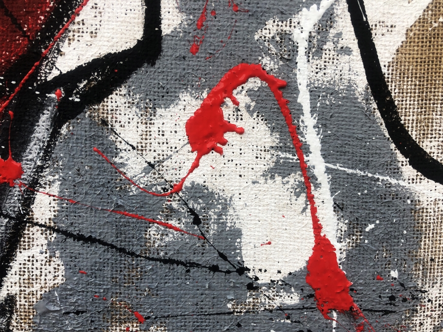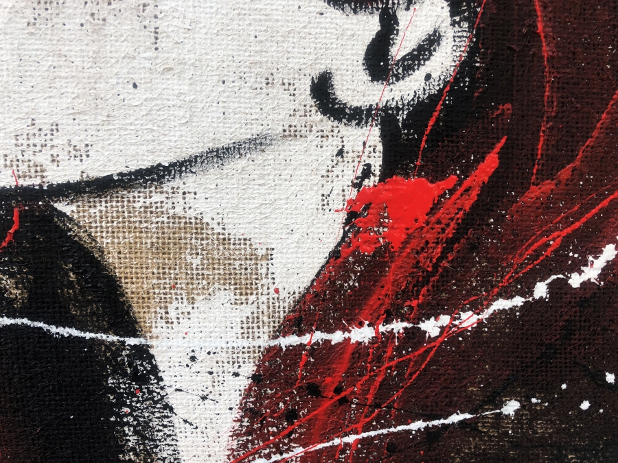 Il dipinto è realizzato completamente a mano intelaiando la tela di juta su un telaio di legno e creando il disegno dipingendolo con colori acrilici.
