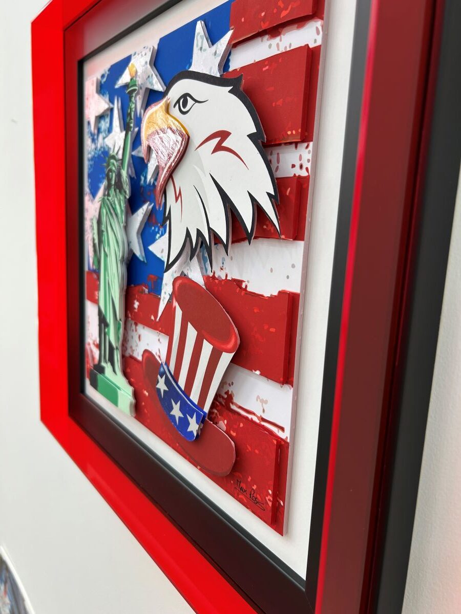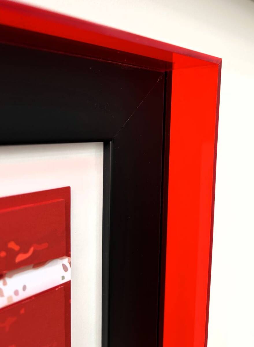 la creazione artistica viene completata con l’utilizzo di un nuovo concetto di cornice che utilizza il plexiglass per esaltarne l’unicità